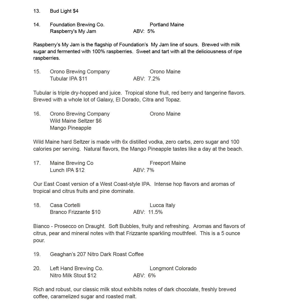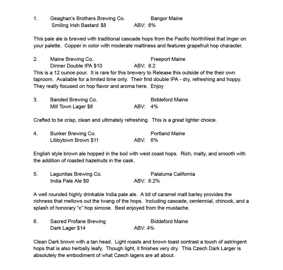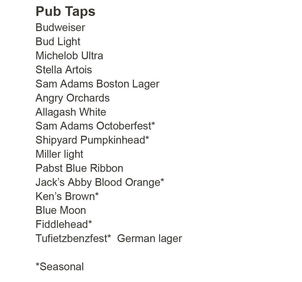 Wine & Tap List
